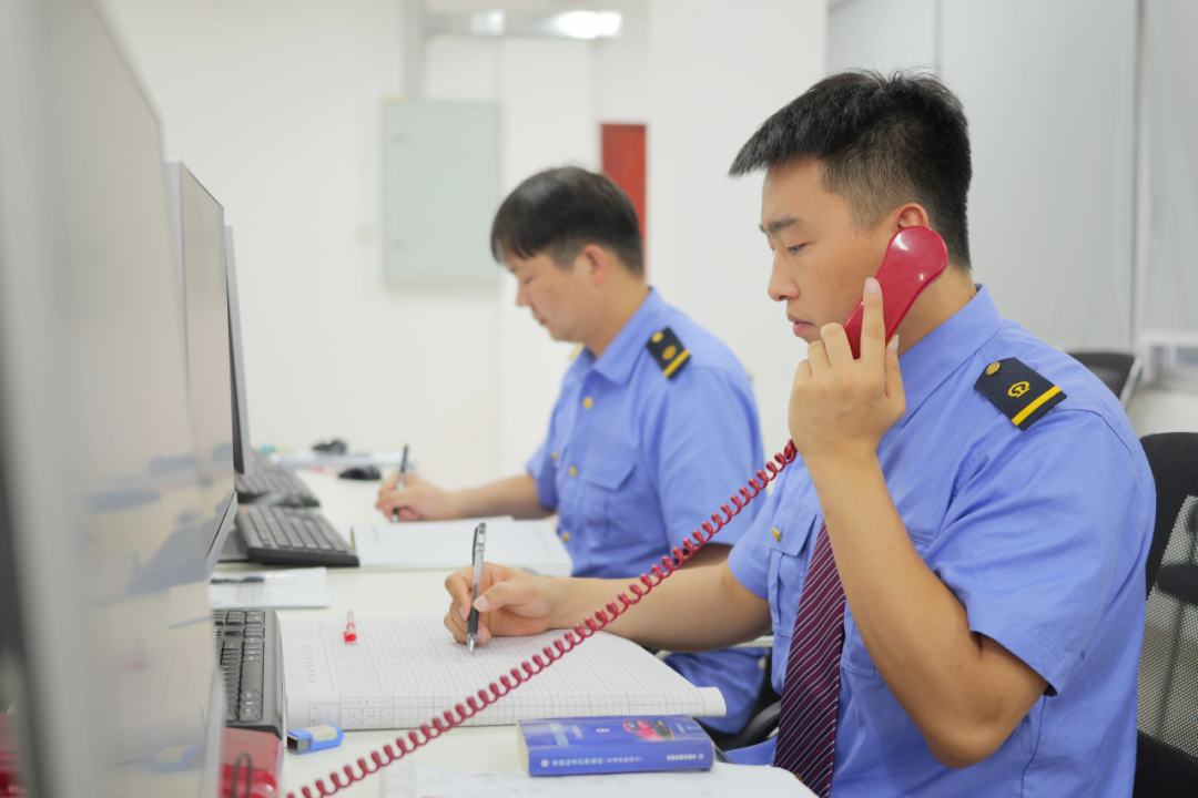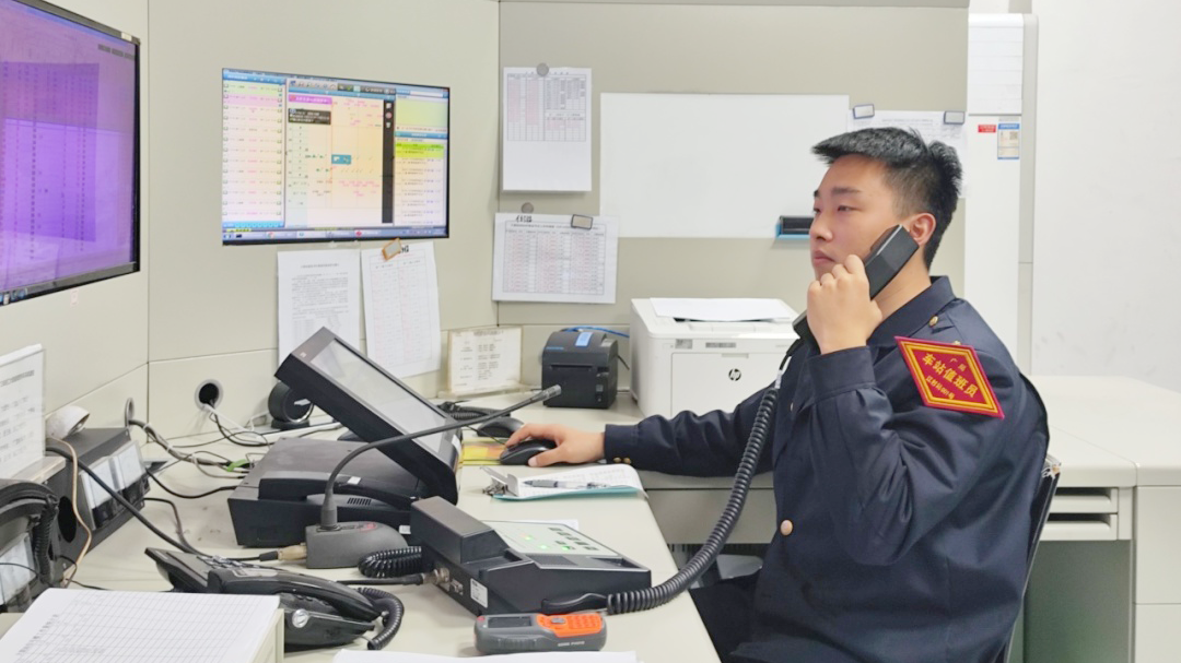“调车组注意,3道防溜措施已撤除。”28岁的值班员李勇韬每班需接打300余通电话,下达逾百条指令。
